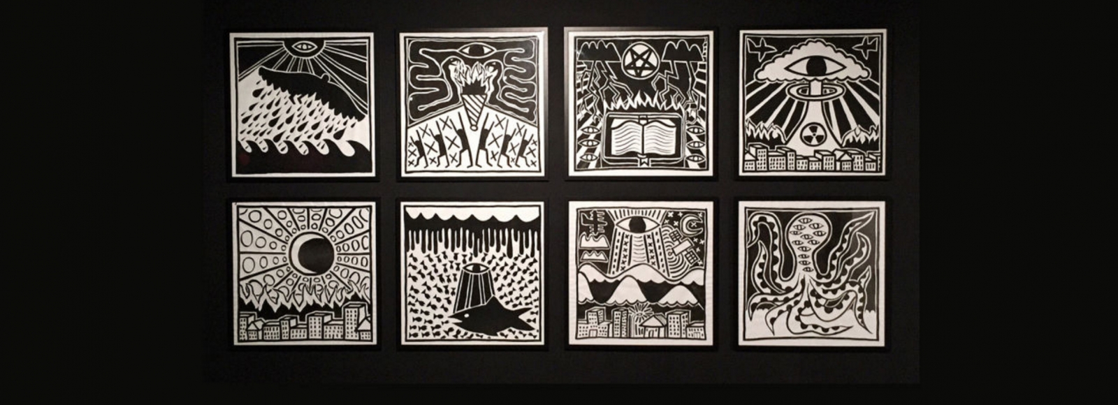 Daniel is a prolific painter and printmaker. His works suggest the influences of Reg Mombassa, Brett Whiteley, and symbolic hieroglyphic art. Full of visual references to iconic Sydney landmarks and a haunting and repeated theme of the eye of Horus (the all-seeing eye, often encased by the sun and symbolising protection, power, and health) Daniel’s primarily monochromatic aesthetic is bold and balanced. His works have broad popular appeal and are sold through Saatchi Art, Indiewalls, and Cicada Press at UNSW Art & Design.
