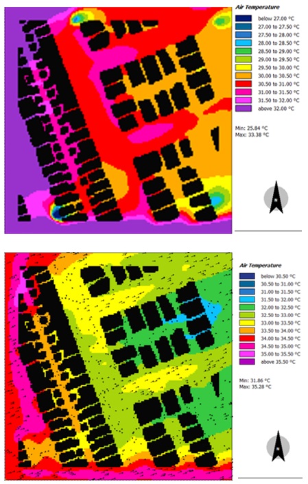 - To investigate the impact of building height, street width, aspect ratio, built area ratio, orientation and dimensions of open spaces to the distribution of the ambient and surface temperature as well as on thermal comfort conditions in open spaces.