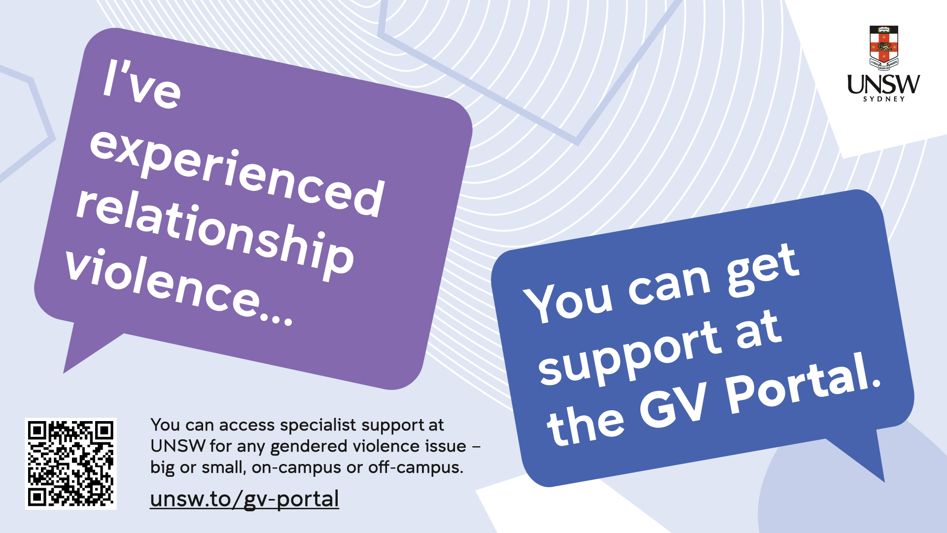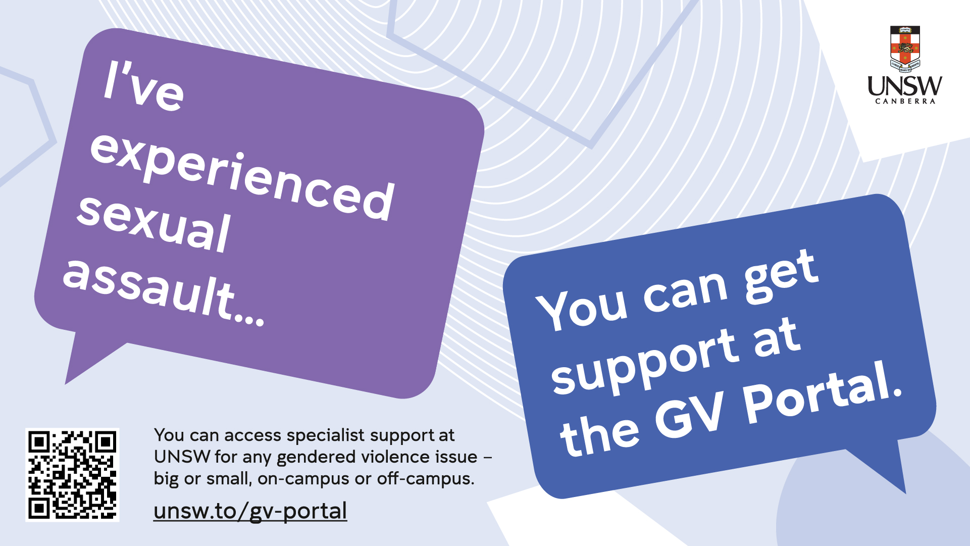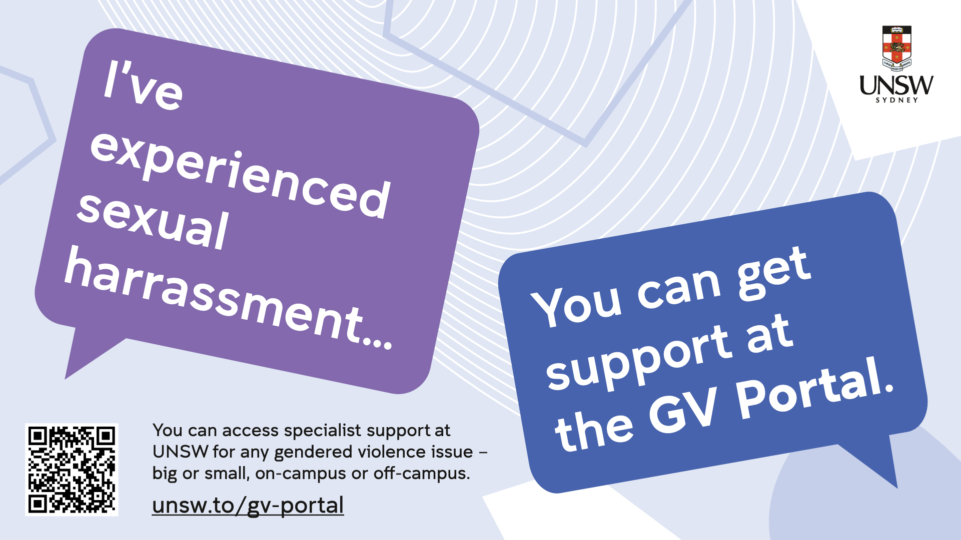 Evidence from the 2021 Universities Australia National Student Safety Survey (NSSS) showed that 49.3 per cent of UNSW respondents said they did not know where to seek support. This campaign aims to address this by raising awareness of the GV Portal.