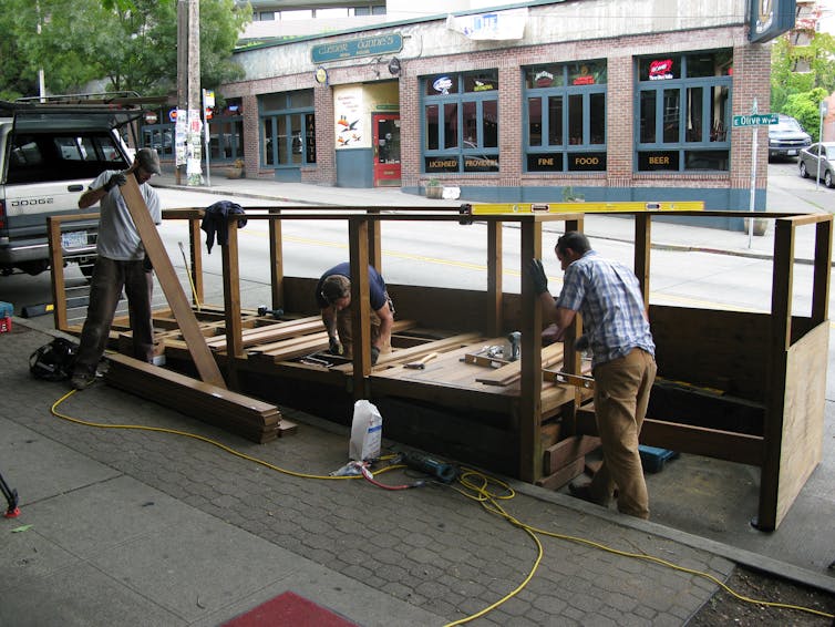 As US urban activist and writer Jane Jacobs explained so powerfully, cities need more than parks and plazas: commercial activity is a crucial component of public life. Cafes are increasingly important sites for community interaction as other places for local exchange disappear, including banks, post offices, corner delis and newsagents, on top of the local hardware, haberdashery and other specialist shops lost to competition from larger retailers and the digital marketplace. Parklets present some hope for walkable, local commerce.