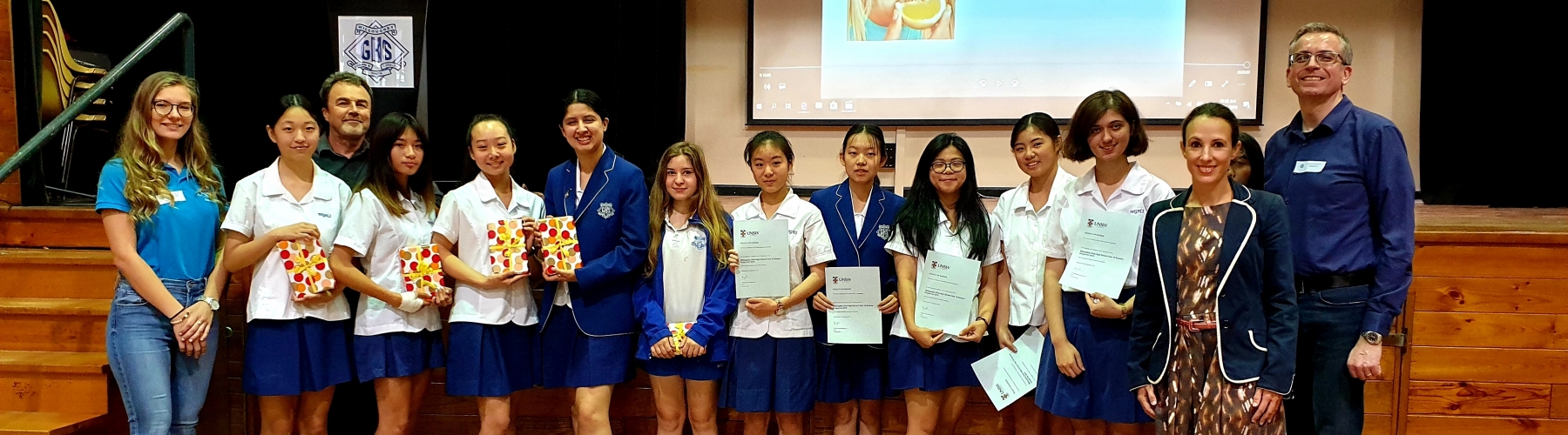 In the month to follow the first day of the event, the students planned and conducted scientific investigations, presenting their findings to their class. The Science teachers then selected one group from each class who were to present their project at the second day of the event. UNSW academics, along with Willoughby Girls High School Science teachers formed the judging panel and selected the top two teams. The winning team received a UNSW certificate signed by the Dean along with a book prize and second place team also received a certificate.