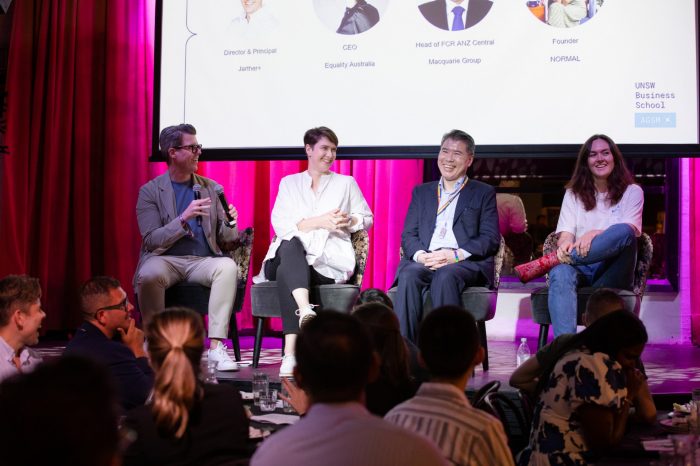 Jarther Taylor, AGSM Adjunct Faculty member and Principal of Jarther+, guided a panel discussion with three LGBTIQ+ sector experts: Anna Brown, CEO, Equality Australia, Lucy Wark, Founder, NORMAL, and Kuan Chia, Head of FCR ANZ Central, Macquarie Group.