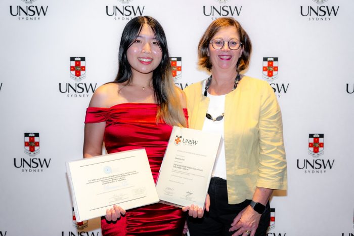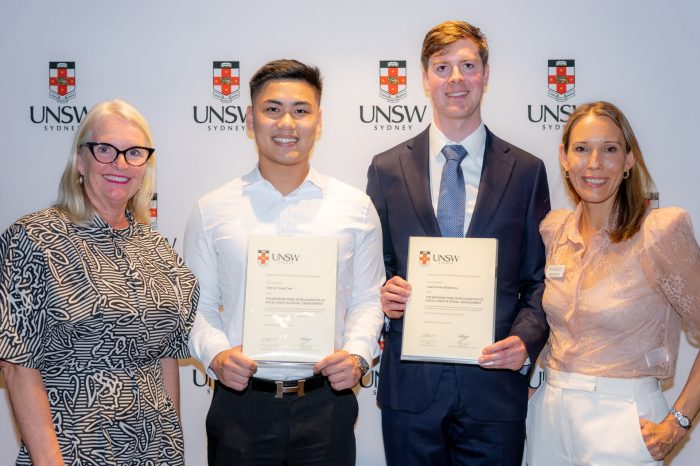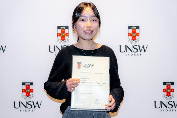 Professor Maree Toombs, Deputy Dean Indigenous, was the guest Faculty speaker and presented the prizes to students. In her speech, she shared some of her own story, discussed the importance of community leadership and her vision for Indigenous education in the Faculty of Medicine & Health at UNSW and the aspiration for better access to healthcare for Aboriginal and Torres Strait Islander people. Dr Wilson Luu, Education Focused Lecturer at UNSW School of Optometry & Vision Science, UNSW Alumni and former OptomSoc president, delivered the keynote speech emphasising the importance of self-discovery. He underscored that exploring one’s identity involves a profound examination of personal values and purpose. Understanding who you are at your core, identifying your fundamental beliefs, and recognising your motivations are crucial steps. Instead of conforming to societal expectations, embracing self-awareness and authenticity allows individuals to lead a more fulfilling life.