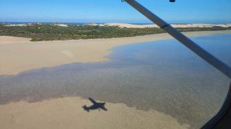 It was stunning at daybreak, with not a breath of wind. Ideal conditions for doing the Coorong flight. More often than not, we have surveyed the Coorong in a blowing gale, causing turbulence as it blows over the dunes, bumping the plane around. Today was a great flight. We met our South Australian colleagues from the Department of Environment and Water. These intensive times of counting waterbirds provide us with an opportunity to train new waterbird counters from our collaborating state agencies. Our trainee waterbird counters spent a few intensive hours in the plane, sitting behind an experienced counter and practicing their identifications and estimates of different species of waterbirds while hearing an experienced counter.