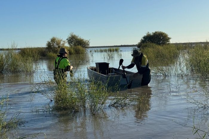 The team also conducted a second round of fish sampling at Narran Lakes, the first being in October 2024. Previous to this, fish surveys had not been undertaken at Narran Lakes since those conducted by Rolls and Wilson in 2008.