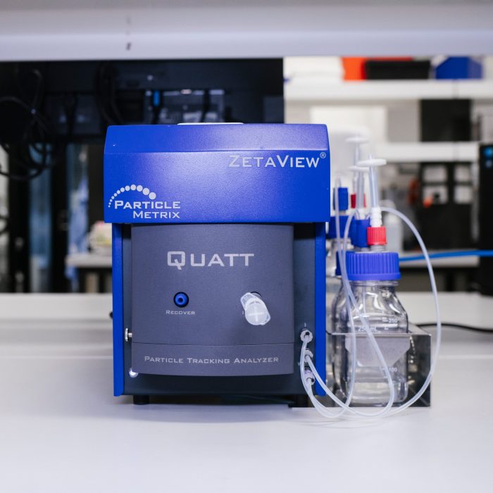 The ZetaView® QUATT, developed by Particle Metrix, is an advanced nanoparticle tracking analyzer (NTA) designed for comprehensive characterization of nanoparticles in liquid suspensions. It integrates multiple laser excitations and fluorescence detection capabilities to provide detailed analyses of particle size, concentration, zeta potential, and fluorescence properties.