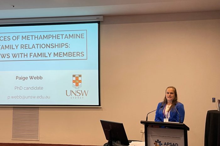 NDARC Research Assistant and PhD Candidate, Paige Webb attended APSAD Canberra 2024 where she presented the session ‘Influences of methamphetamine use on family relationships: Interviews with family members’, as well as her poster ‘Qualitative exploration of the relationships between people who regularly use methamphetamine and their family and friends’.
